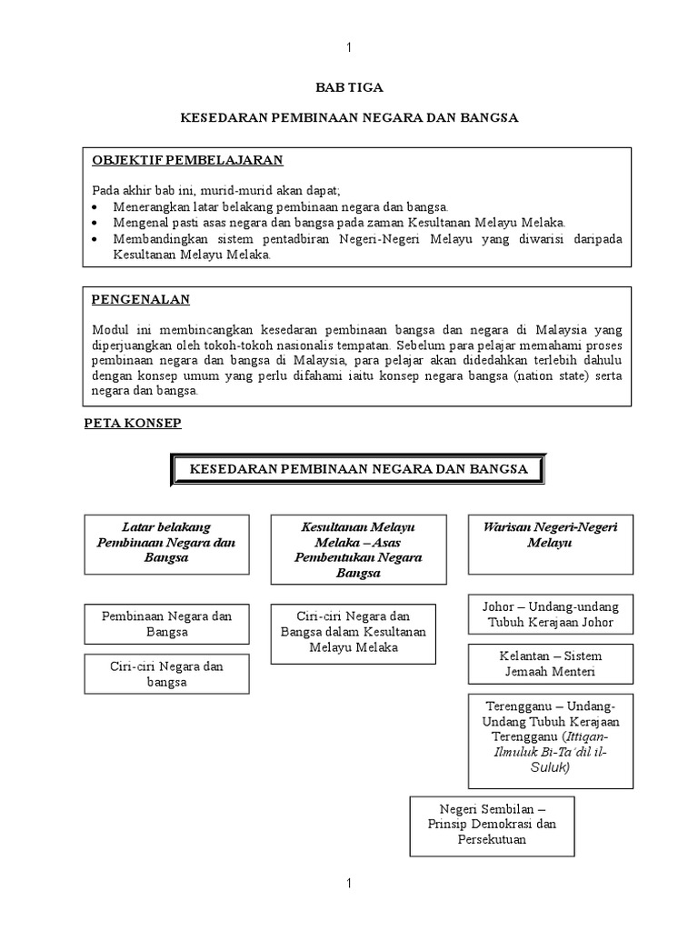 Bab Tiga Kesedaran Pembinaan Negara Dan Bangsa Objektif Pembelajaran
