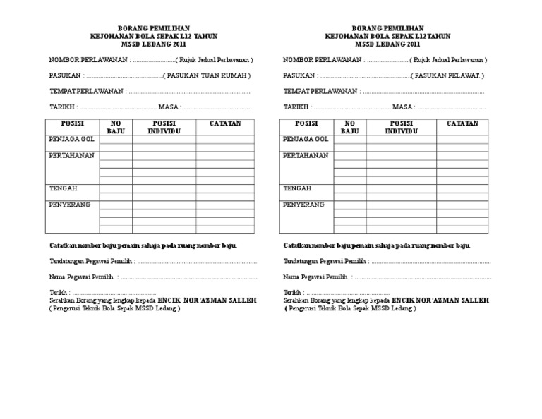 Contoh Surat Makluman Kejohanan Bola Sepak