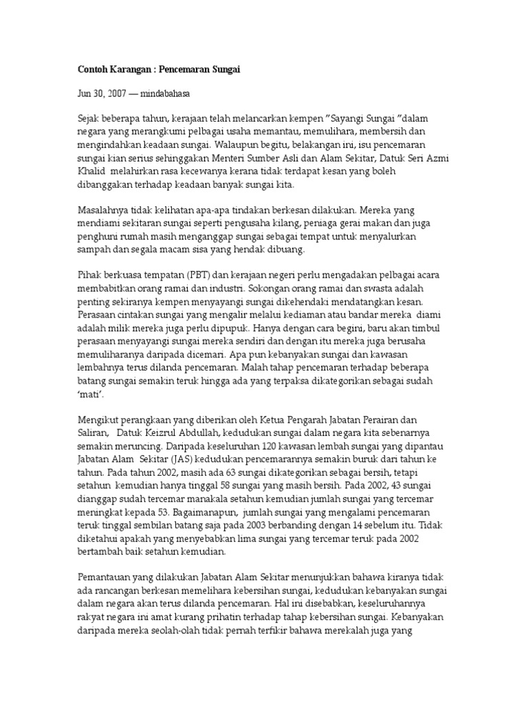 Contoh Karangan Kesan Pencemaran Sungai