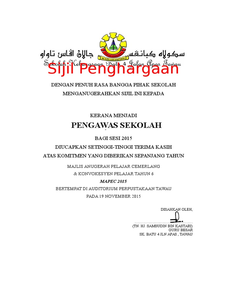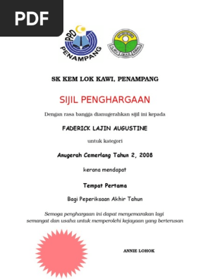 Sijil Penghargaan Anugerah Tokoh Pelajar 2013 Smk Kunak Docx