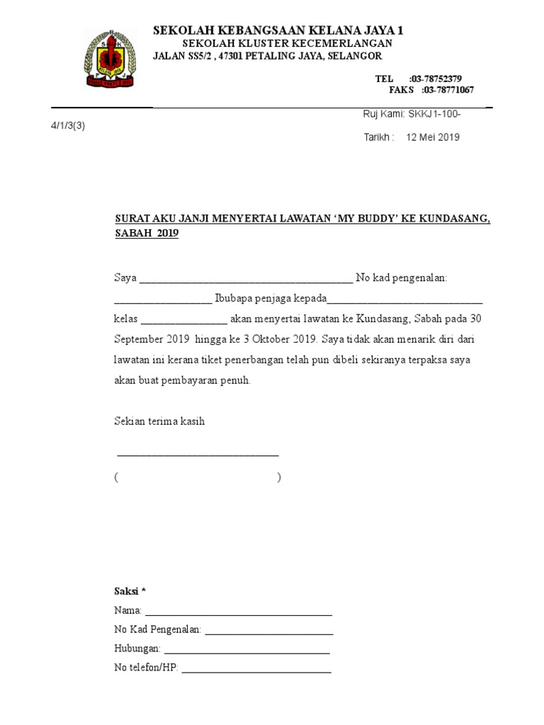 Contoh Surat Rasmi Aku Janji Nice Info B