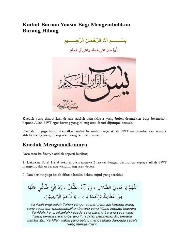 Kaifiat Bacaan Yaasin Bagi Mengembalikan Barang