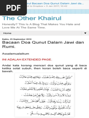 The Other Khairul Bacaan Doa Qunut Dalam Jawi Dan Rumi