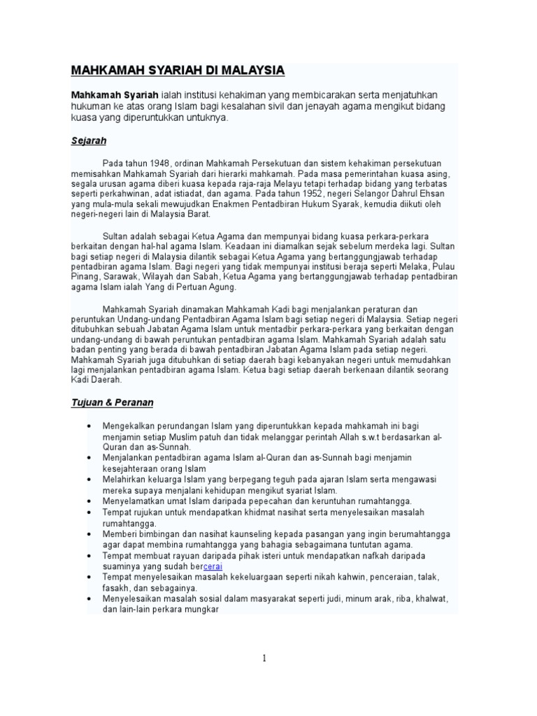 Doc Sejarah Mahkamah Syariah Dan Peranan Jksm Dalam Memartabatkan Mahkamah Syariah Suhaizad Saifuddin Academia Edu