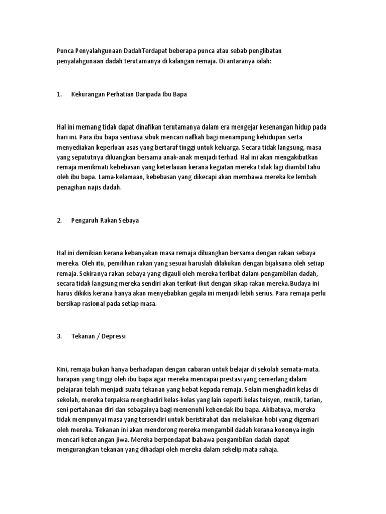 Penyalahgunaan Dadah Dalam Kalangan Remaja Pdf Document