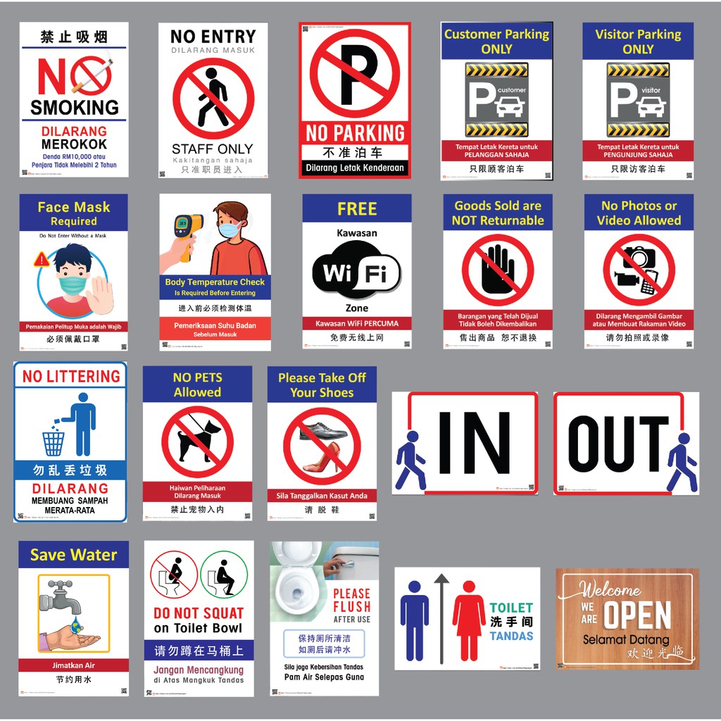 Laminated Poster Signage Papan Tanda No Smoking Sign Dilarang Merokok No Entry No Parking Office Signboard Sop Poster Shopee Malaysia