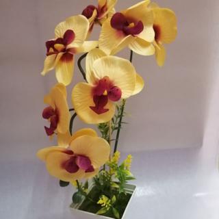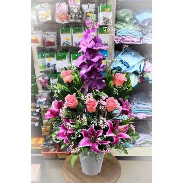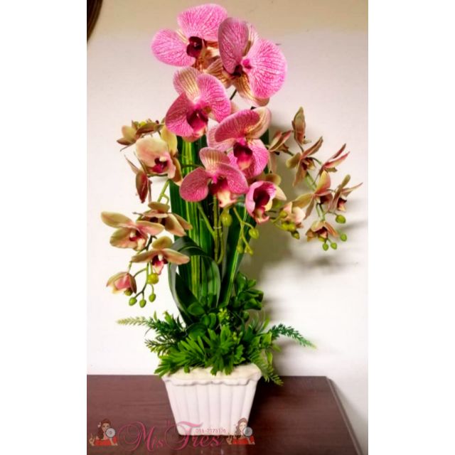 Gubahan Bunga Orkid Plastik Pasu Tinggi