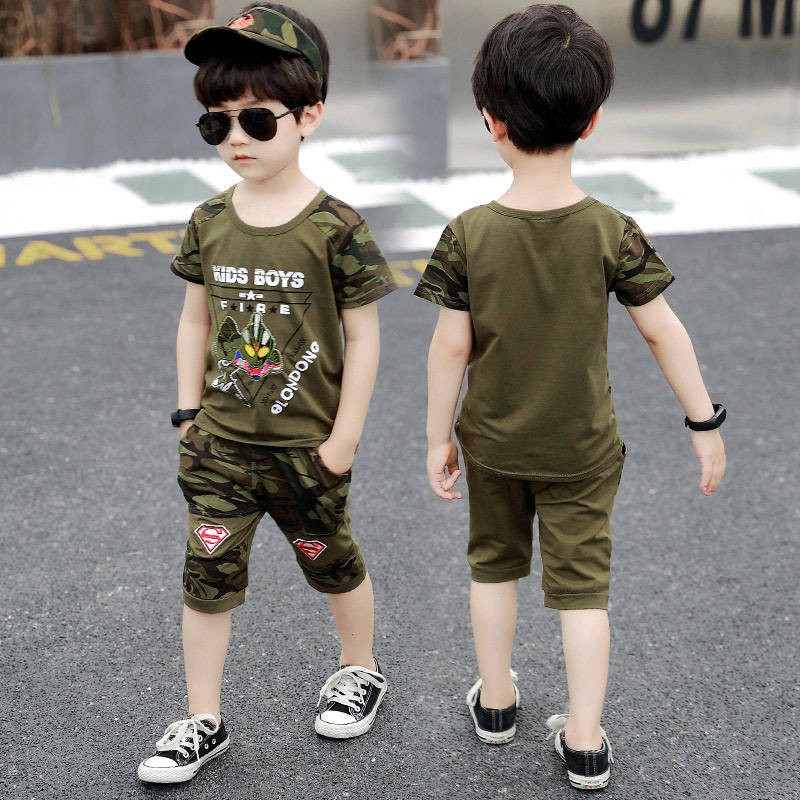 Baju Raya Baju T Shirt Baju Budak Lelaki Baju Tshirt Pakaian Kanak Kanak Lelaki Pakaian Kamuflase Musim Panas 2020 Model Musim Panas 3 Lengan Pendek Kanak Kanak 4 Gaya Asing 5 Kanak Kanak Lelaki Pasang Tampan