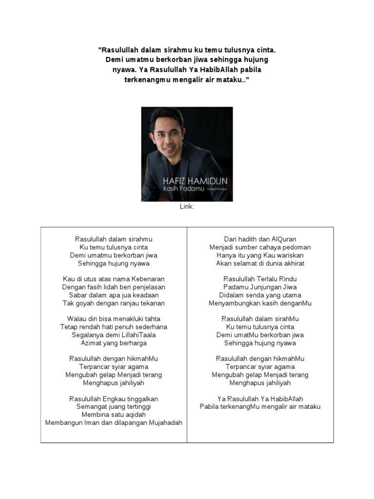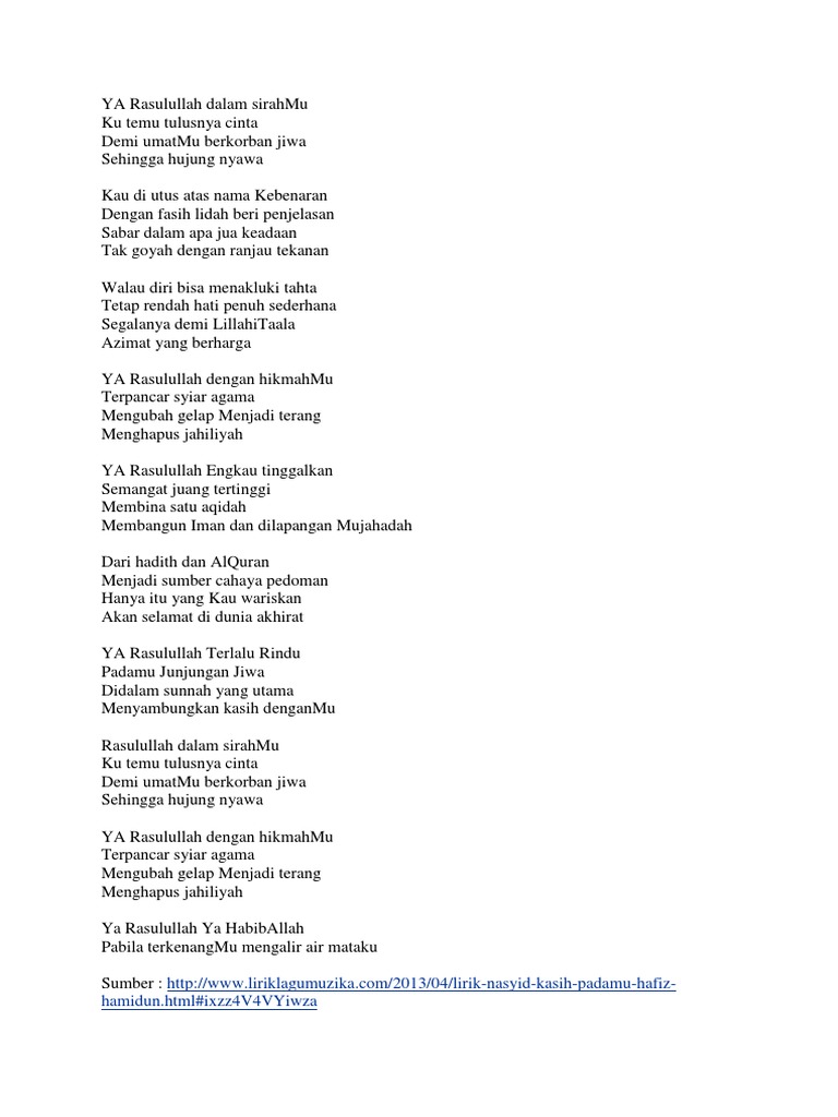 Lirik Lagu Kasih Padamu Ya Rasulullah Hafiz Hamidun Facebook